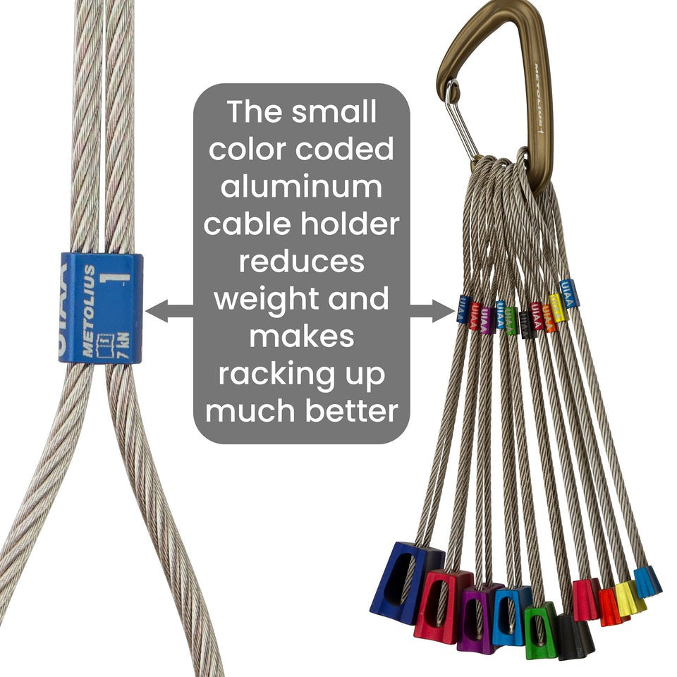 They are 30% lighter than the competition, with a full set of ten weighing just 331g (11.6 oz). Anodized heads and collars are color-coded to match our cam colors. They are the perfect pro for climbers getting into lightweight trad.