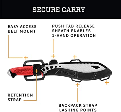 The multi-purpose blade has 3 functions: chop, cut, and baton.