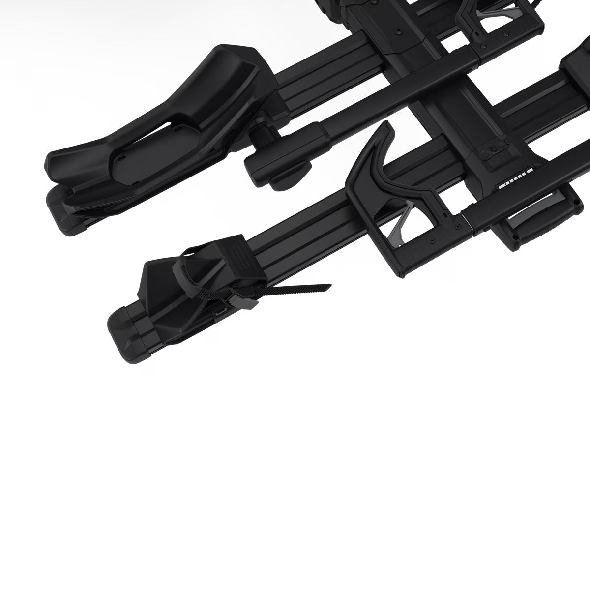 Thule Verse 2" provides superior protection and security for your bikes. The independent single attachment arm secures your bike by clamping down on the front wheel, eliminating frame contact and securing the bike to the rack quickly. With ample spacing between bike positions, on-the-fly wheel tray adjustments, and a new soft-touch attach arm with increased fork clearance, bikes are loaded easily with the peace of mind that they'll be safe on your journey. And with the included theft-deterrent locking cable, security is offered when you're away from your vehicle.