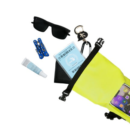 - 2 compartments: phone sleeve and 2L dry bag for your keys, wallet and other small valuables
