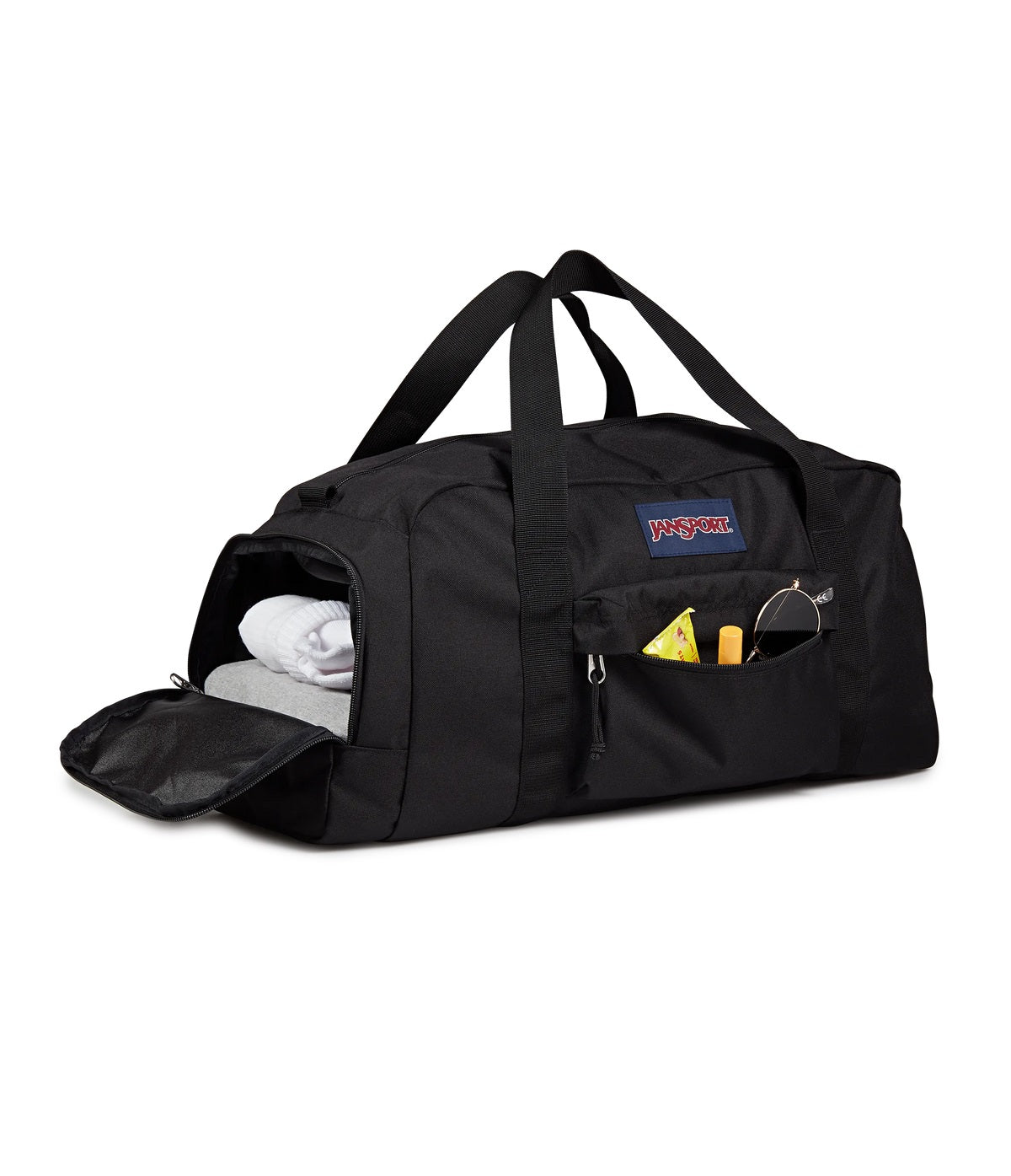The JanSport Weekender Medium Duffel Bag features a packable side pocket, top grab handles, and just the right amount of space for your essentials. It also has a trolley sleeve, making this medium-sized duffel the perfect companion when heading to the airport.
