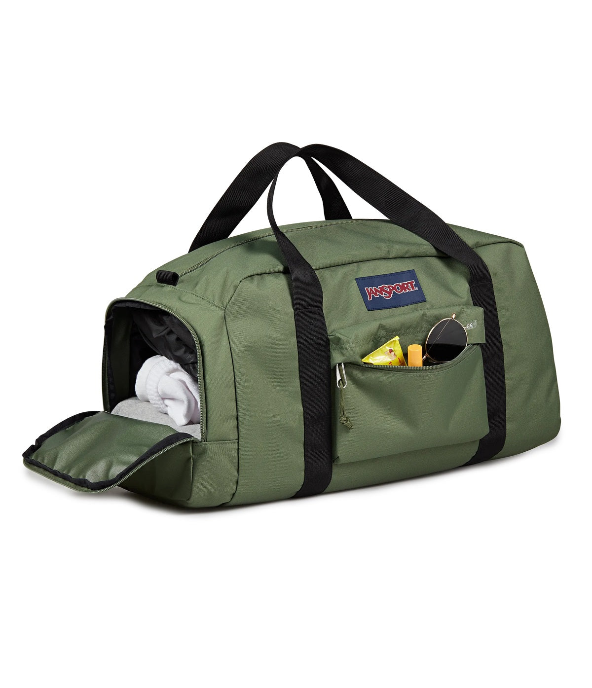 The JanSport Weekender Medium Duffel Bag features a packable side pocket, top grab handles, and just the right amount of space for your essentials. It also has a trolley sleeve, making this medium-sized duffel the perfect companion when heading to the airport.