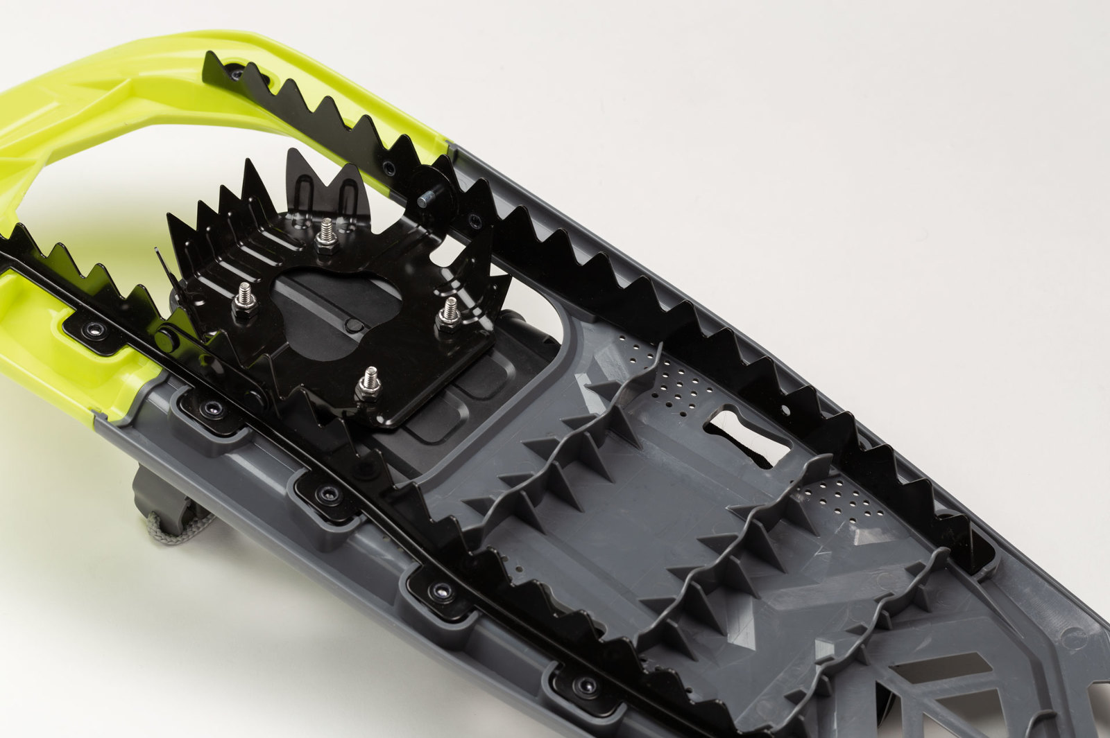 Whitewoods XT snowshoes are molded from cold tested polyethylene for Xtra light weight and hardened steel crampons and crampon rails for secure traction. The XT models are a good economical choice for the light touring snowshoe adventures. All XT bindings are bolted to crampons, not riveted, for easy maintenance. XT-25 adult model has our Quick Strap binding system for easy in & out. Pull one strap to tighten, pull the second strap to release. Adjustable heel strap and 15″ long linear crampon rails.