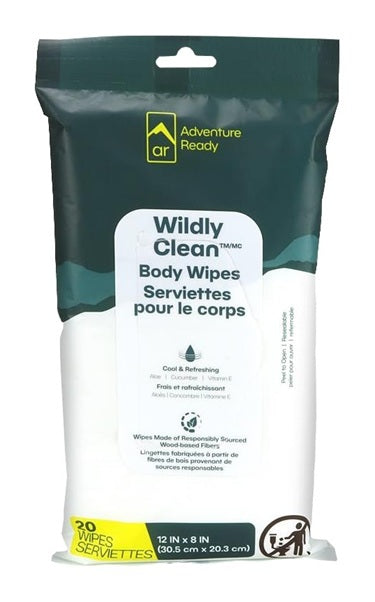 No shower? No problem. ADVENTURE READY Wildly Clean Body Wipes deliver a cooling, revitalizing cleansing from head to toe no matter how far off the grid your day goes. Each plant-based wipe features ScrubWeave™ fiber technology that grabs onto dirt, sweat, and trail grime with ease, leaving skin feeling refreshed and renewed. Infused with a powerful blend of aloe, cucumber, chamomile, and Vitamin E, these wipes cleanse while offering hydration and soothing relief after long days outdoors. 100% Veocel™ viscose construction uses sustainably sourced wood fibers. Bring along ADVENTURE READY Wildly Clean Body Wipes for camping, hiking, or anytime a real shower stays out of reach. Follow Leave No Trace principles and pack out used wipes. Do not flush.