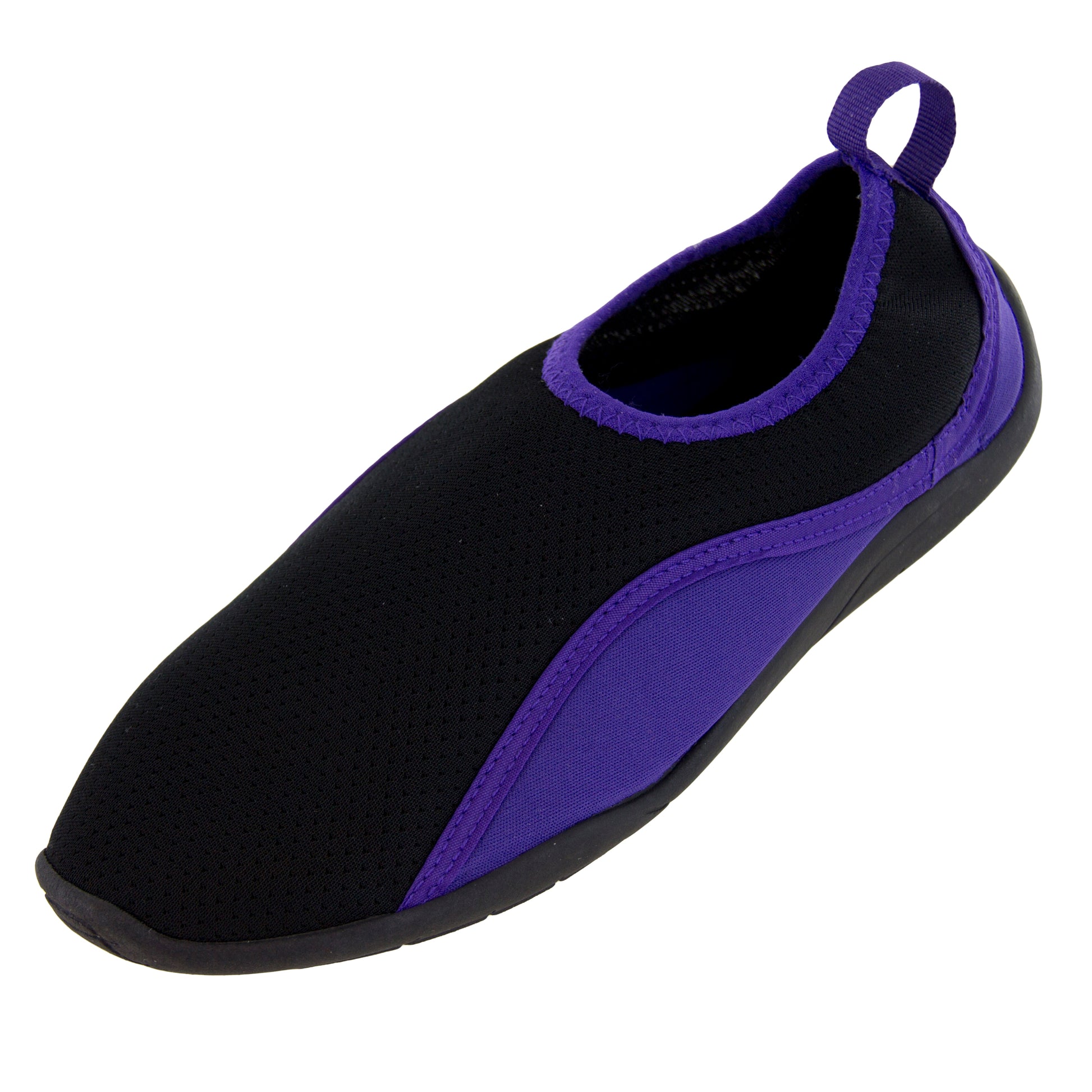 The Sun Ray Women's Finn Aqua Sock keeps you safe and sure-footed around the pool or on the shore. The soft yet durable neoprene/mesh upper is designed to dry quickly and keep air circulating freely for enduring comfort. The removable EVA insole provides ample cushioning underfoot, while the injected TPR outsole offers excellent traction on a variety of slippery surfaces. A pull tab at the heel allows for easier entry and exit. Imported
