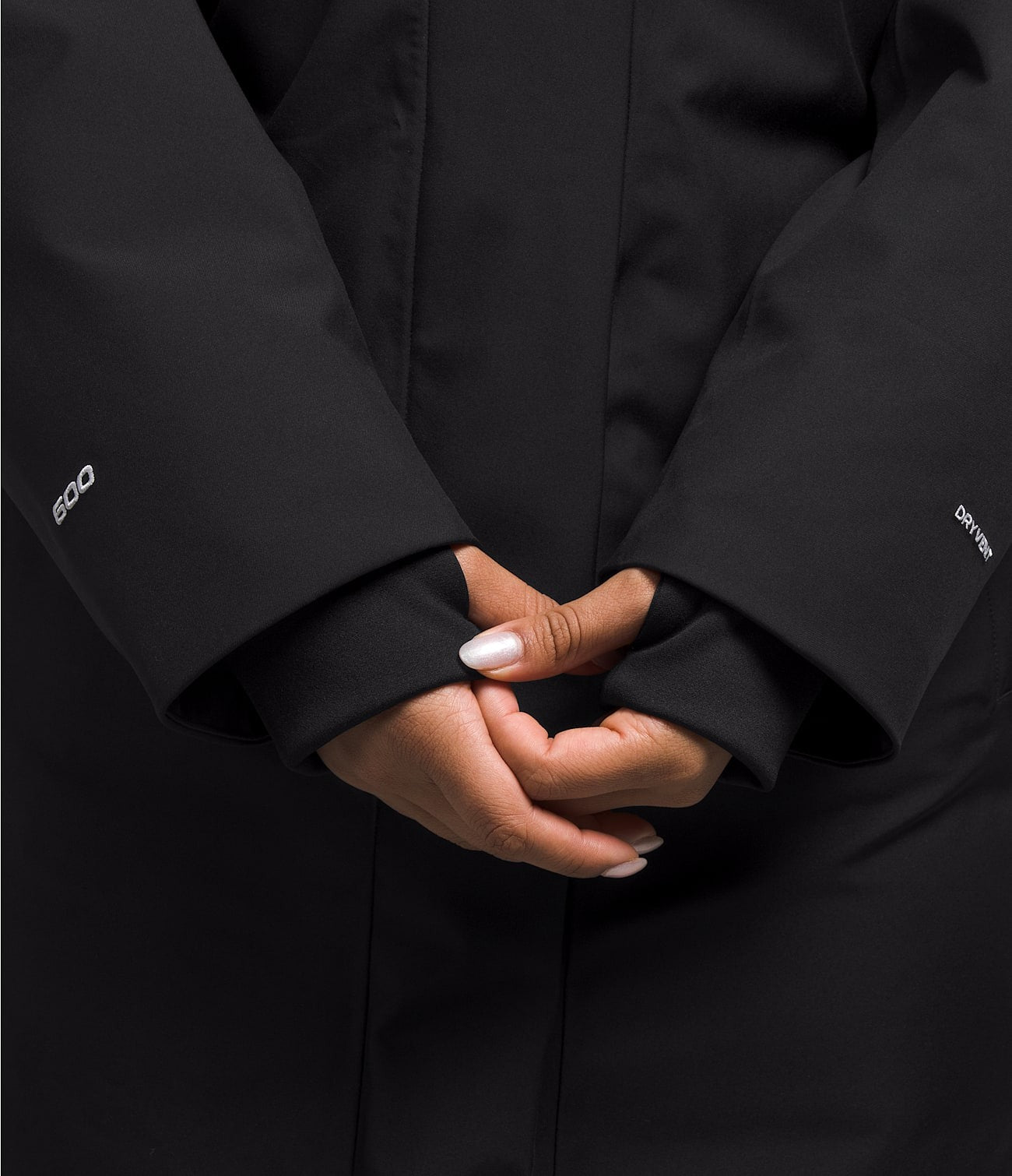 The updated Women’s Plus Arctic Parka is now made using 100% recycled DryVent™ body fabric and 600-fill recycled down insulation for full cold-weather coverage. It also features extended sizing and an internal waist adjustment for a customizable fit.