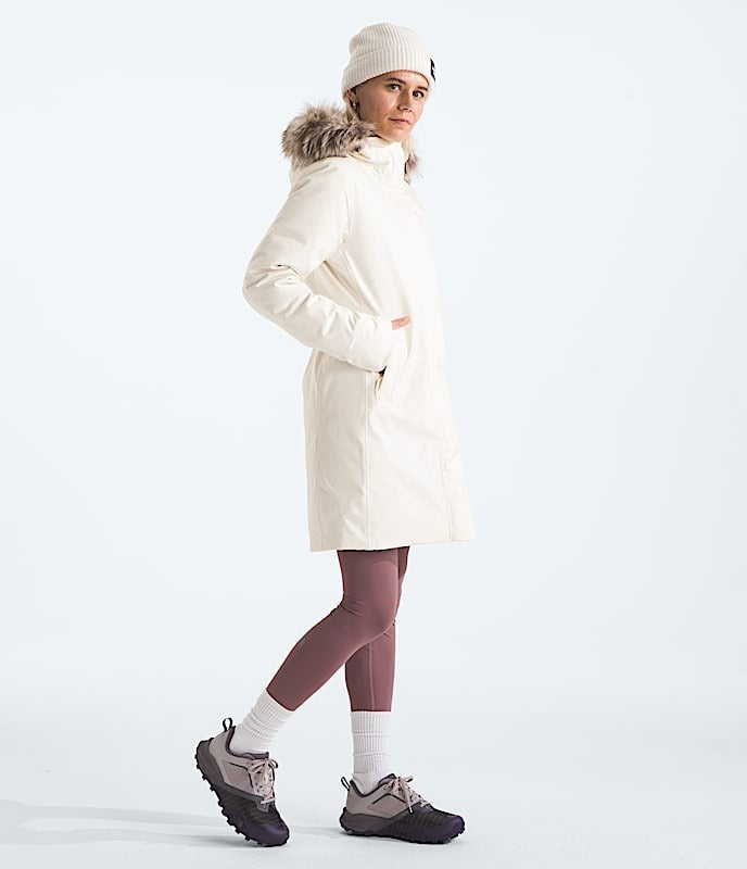 The updated Women’s Arctic Parka is now made using 100% recycled DryVent™ body fabric and 600-fill recycled down for full cold-weather coverage. It also features an internal waist adjustment for a customizable fit.