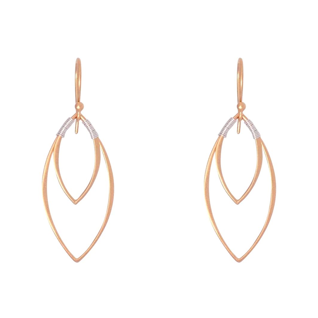 Subtle mixed metals balance perfectly on these modern tear drop earrings. The delicate and contrasting wire wrap detail at the top is simple but eye-catching. Short French ear wires are incredibly lightweight; these earrings stay put!