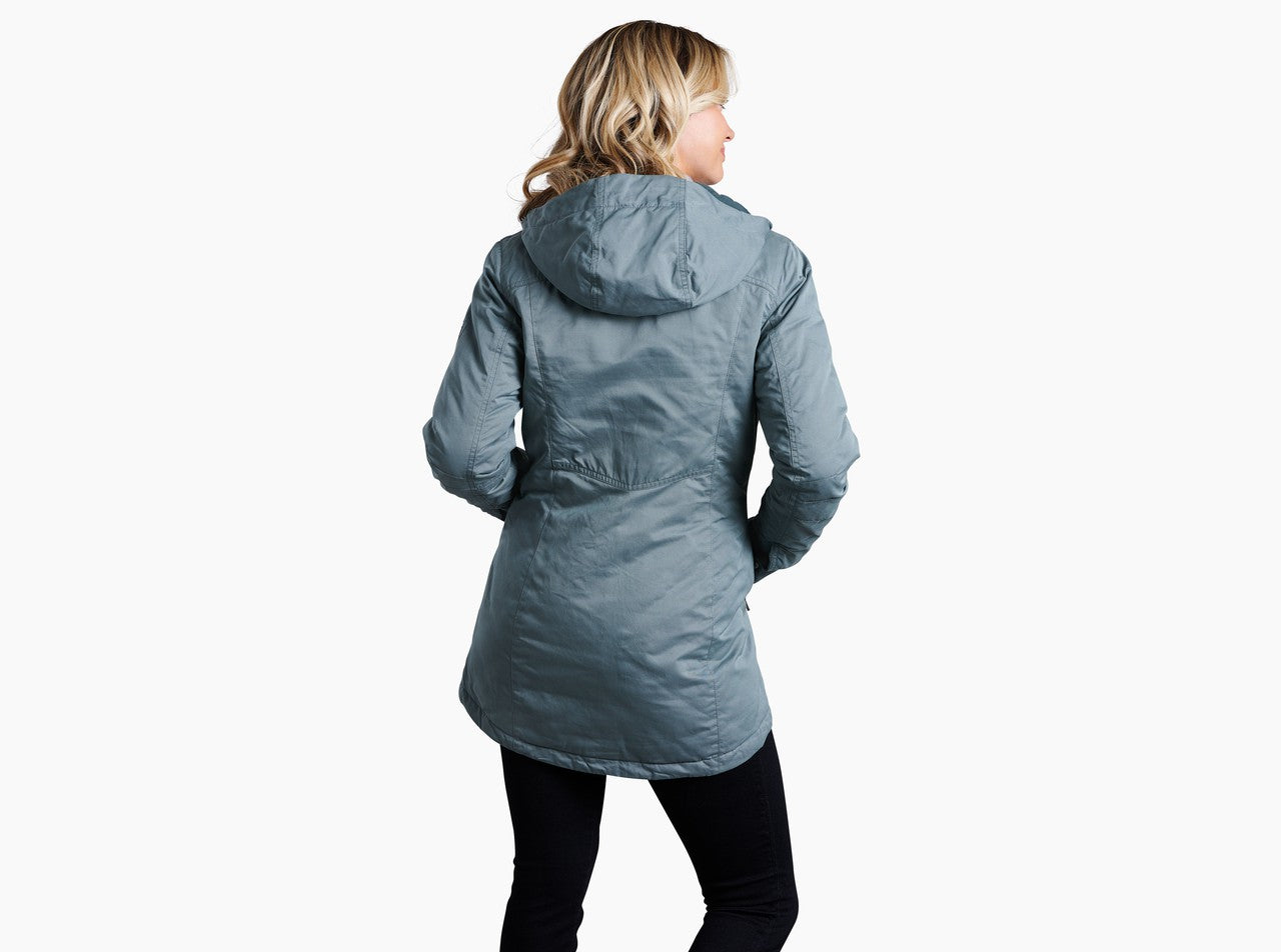Elevate your outdoor adventure with the KÜHL CELESTE™ DOWN PARKA. Feminine, mountain-born style crafted with a durable wax-coated exterior provides rugged protection against wind and water. RDS-Certified down insulation provides cozy warmth and the ultimate in winter comfort. Oversized, zippered handwarmer pockets and an interior security pocket keep valuables protected.