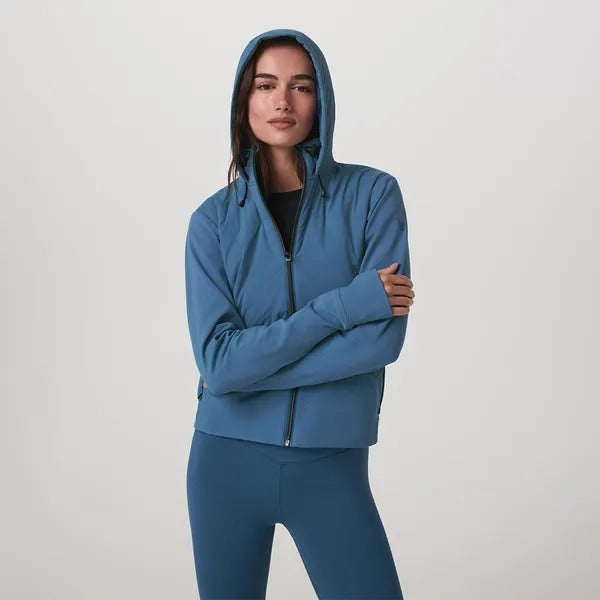 Be in your element, in the elements. From cold-weather runs to cross-country skis, this lightly insulated jacket is made with our performance stretch woven fabric with knit panels on the sides and sleeves to help you move with ease. Features Primaloft™ eco-insulation and PFC-free, durable water-repellent coating.