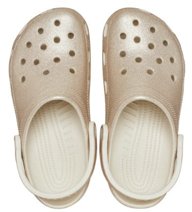 The iconic clog that started a comfort revolution around the world, now with an adorable all-over glitter treatment! It's the irreverent, go-to comfort shoe that you're sure to fall deeper in love with day after day. Crocs Classic Clogs feature lightweight, cushioned construction and offer an ongoing invitation to be comfortable in your own shoes. Sparkle on!