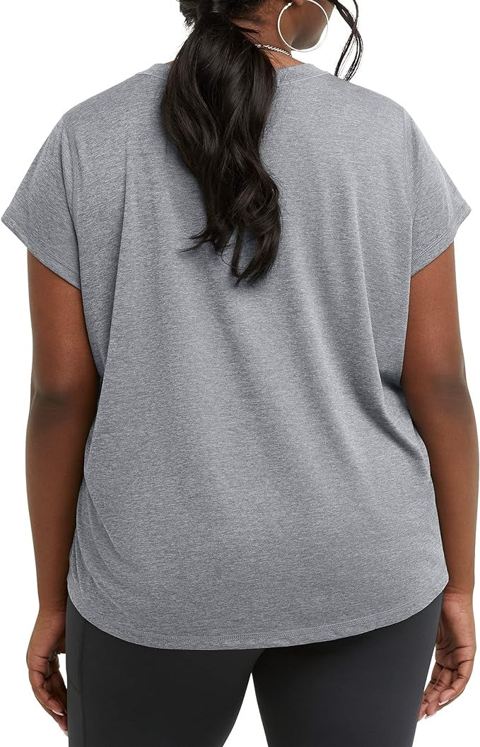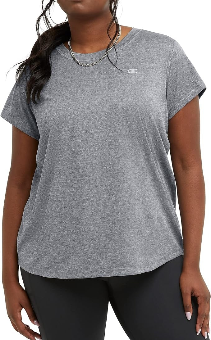 Soft-touch, lightweight tee catches every breeze and lets you keep going. Made for high-sweat activities, this breathable tee wicks sweat and dries quickly. Double Dry™ technology keeps you ultra cool and comfy as it wicks sweat away for cooler comfort and the fabric resists odor so you stay fresh from start to finish with no distractions. Falls to the top of the hip and pairs perfectly with high-rise tights and shorts. Part of our Champion® Made initiative, lightweight Sport Tee is made with percentage of recycled polyester fibers.