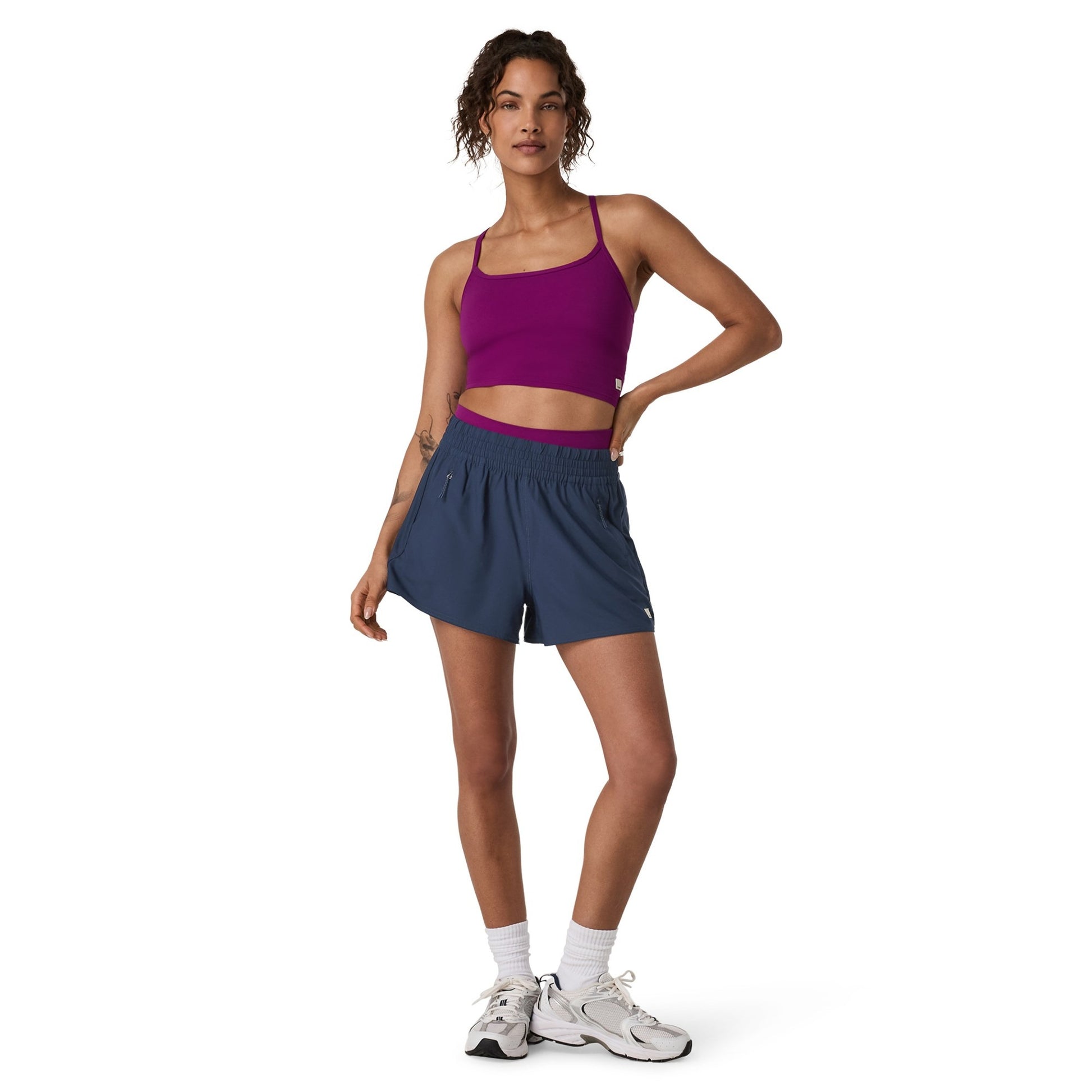 Meet in the middle with the new and improved Dash Short 2.0. Made with the same lightweight stretch fabric with 89% recycled materials, this version features an updated fit with a higher rise and more space through the hip and leg. Store your essentials in the secure pockets and breathe easy with perforated panels. It’s the perfect women's running short.