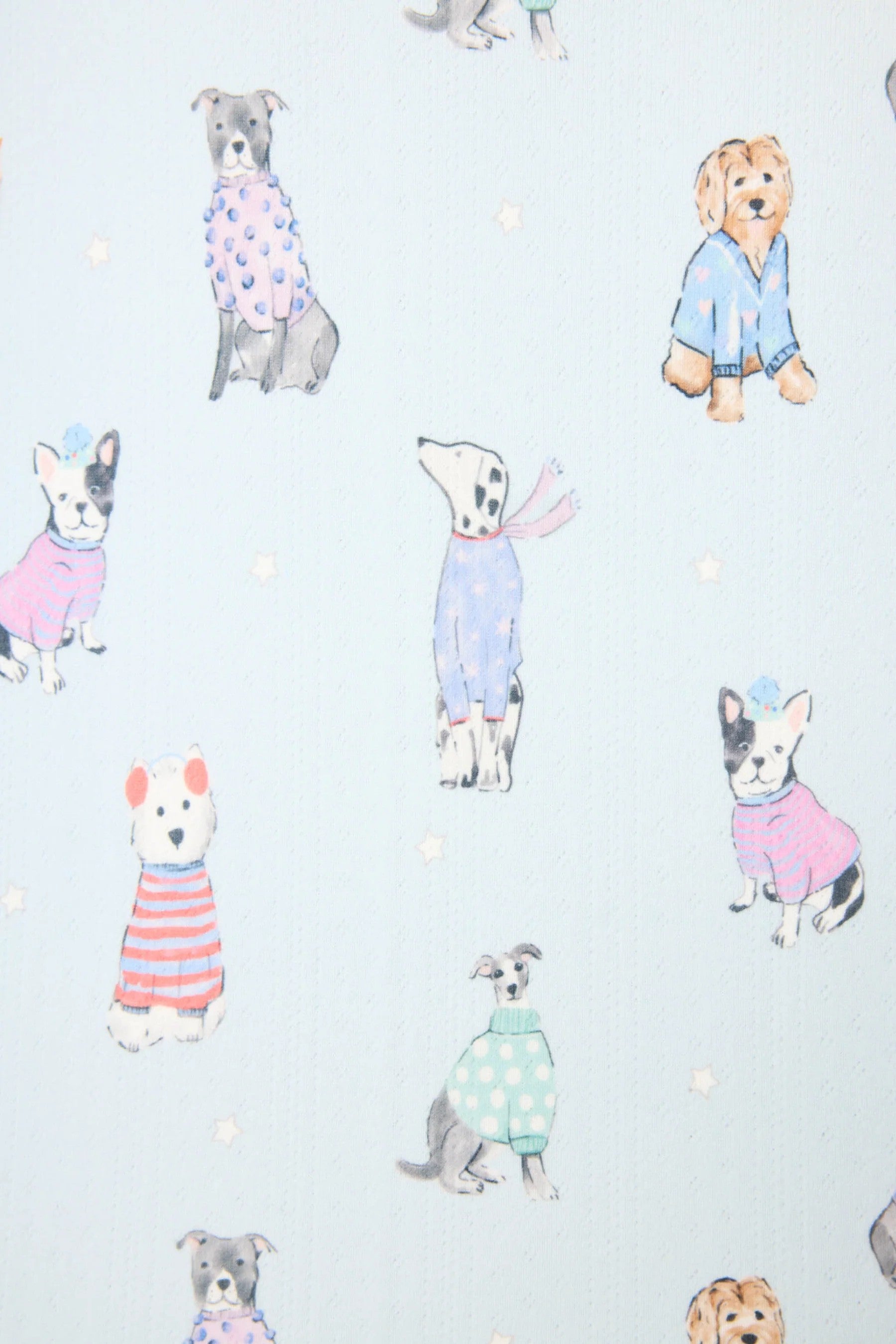 Paw-sitively cozy and snow much fun, these pajama pants are crafted from double-brushed pointelle with a light blue backdrop dotted in playful pups dressed for winter. Designed with a relaxed fit, drawstring waist, and banded cuffs, they’re perfect for snow-day lounging or curling up with your four-legged friend.