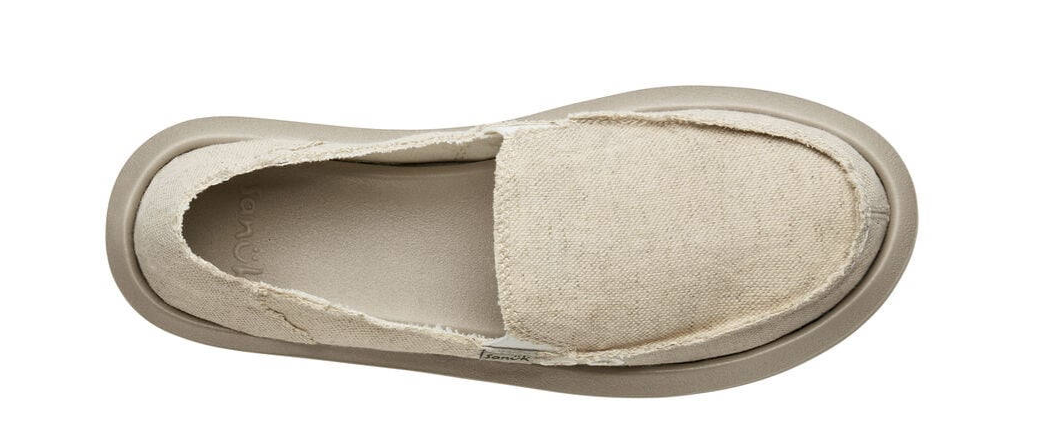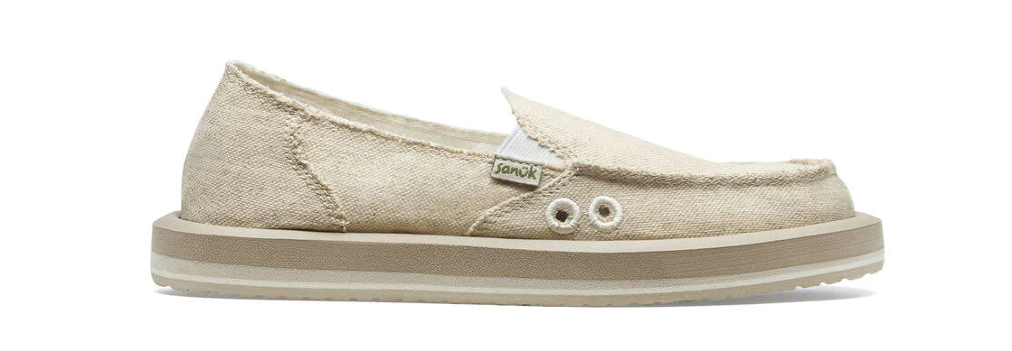 The Sanuk Donna Soft Top Hemp shoe features the bestselling Sidewalk Surfer silhouette, a soft top foam midsole, and is free of bleach, dye, or finishing agents.