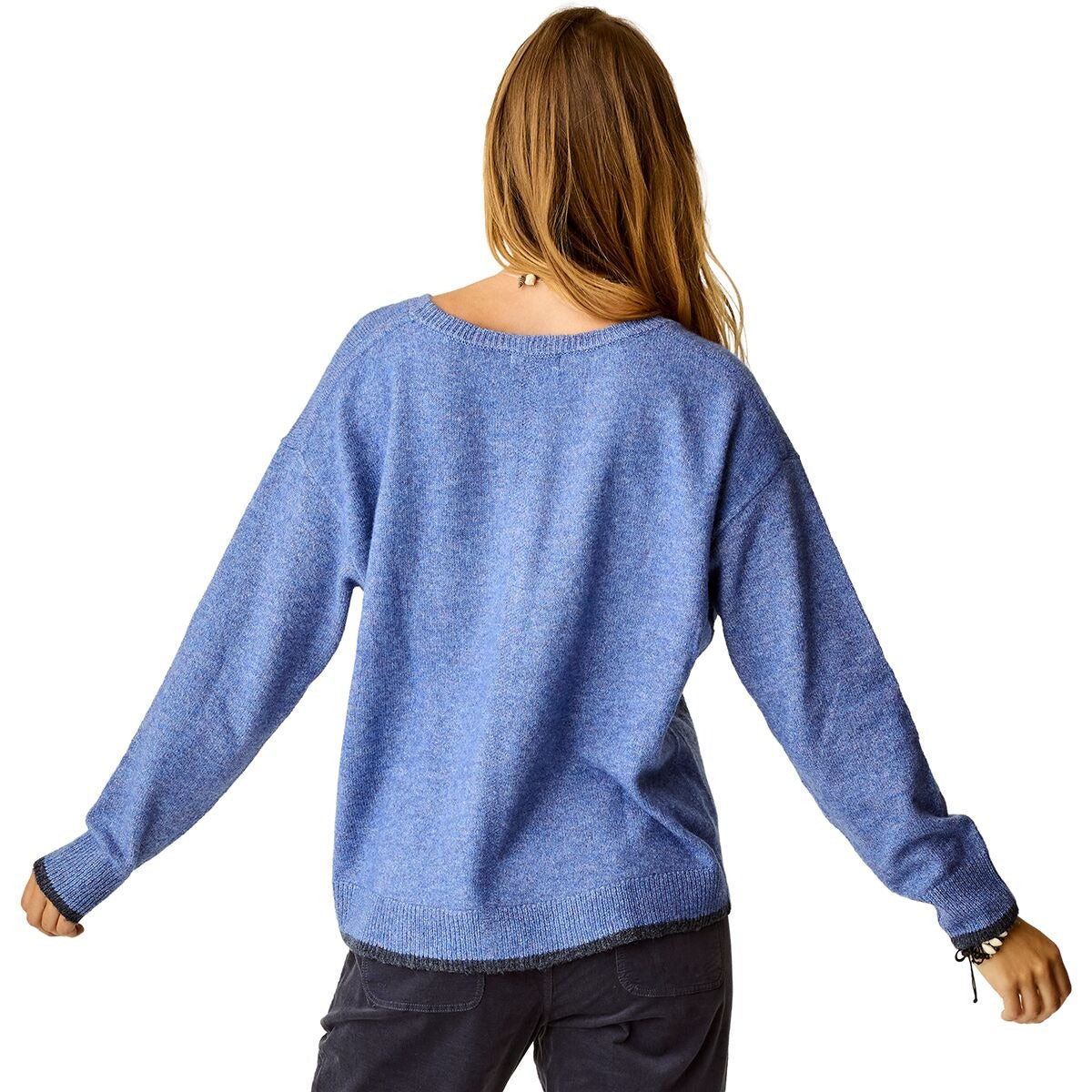 Slip into this oversized sweater, made from our infamous Fuzzy Yarn, and revel in its step hem, contrast tipping and luscious embroidery details. Adding an element of fun to this classic sweater that is a closet must-have.