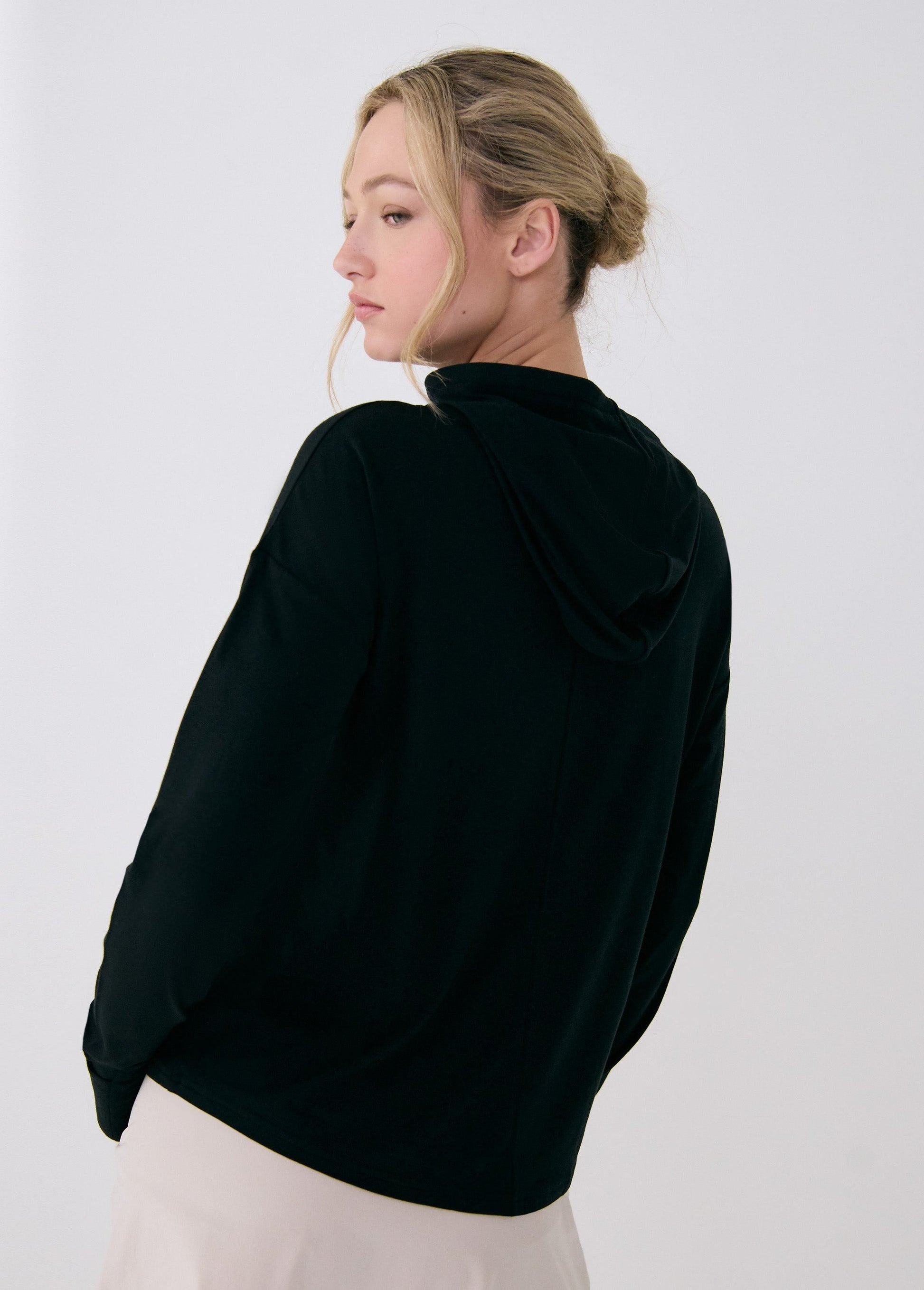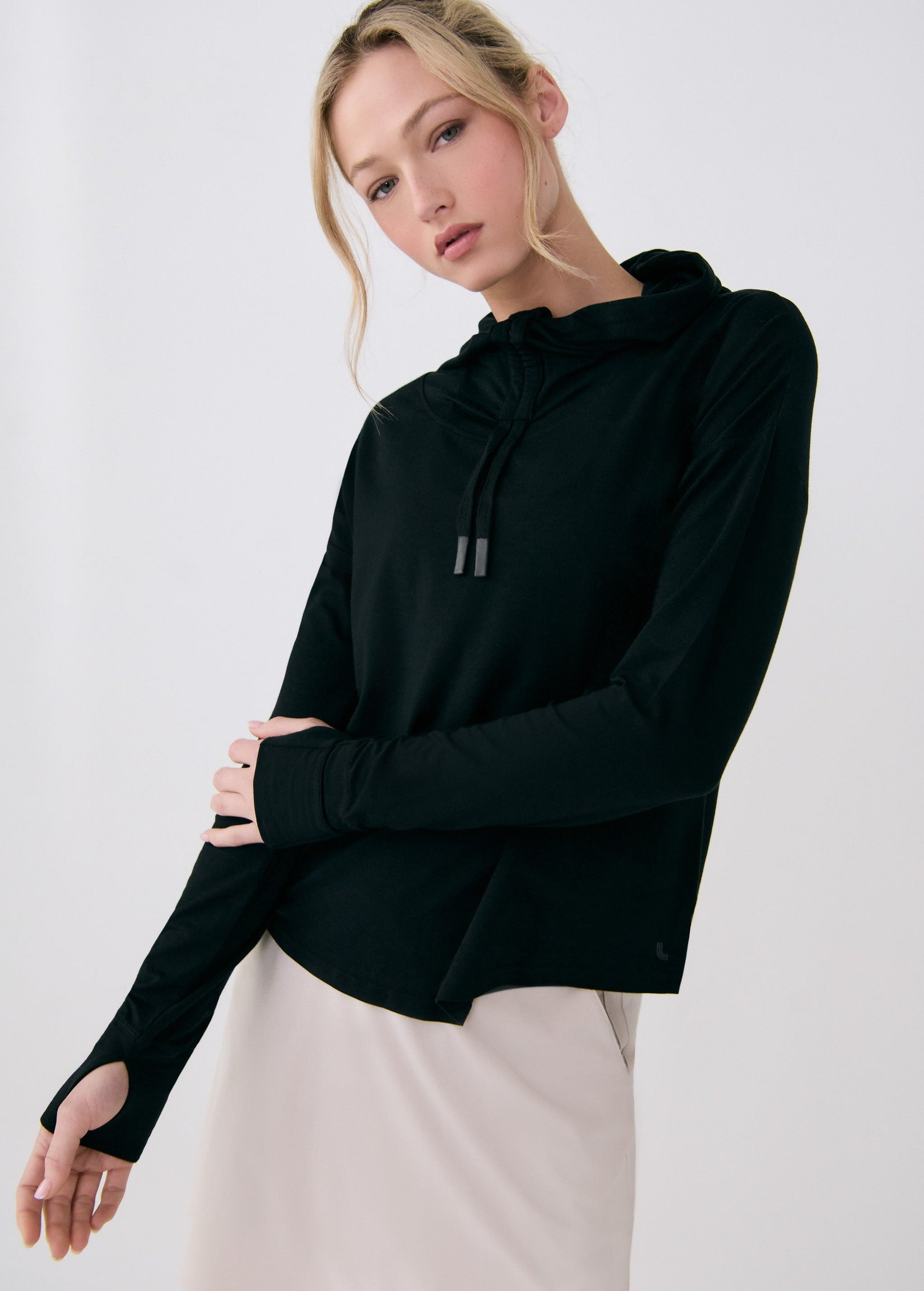 With relaxed drop shoulders and an adjustable hood, this flare-fit, lightweight hoodie is officially your new favourite. Thoughtfully made with a merino wool blend to give you natural breathability and all-day freshness.