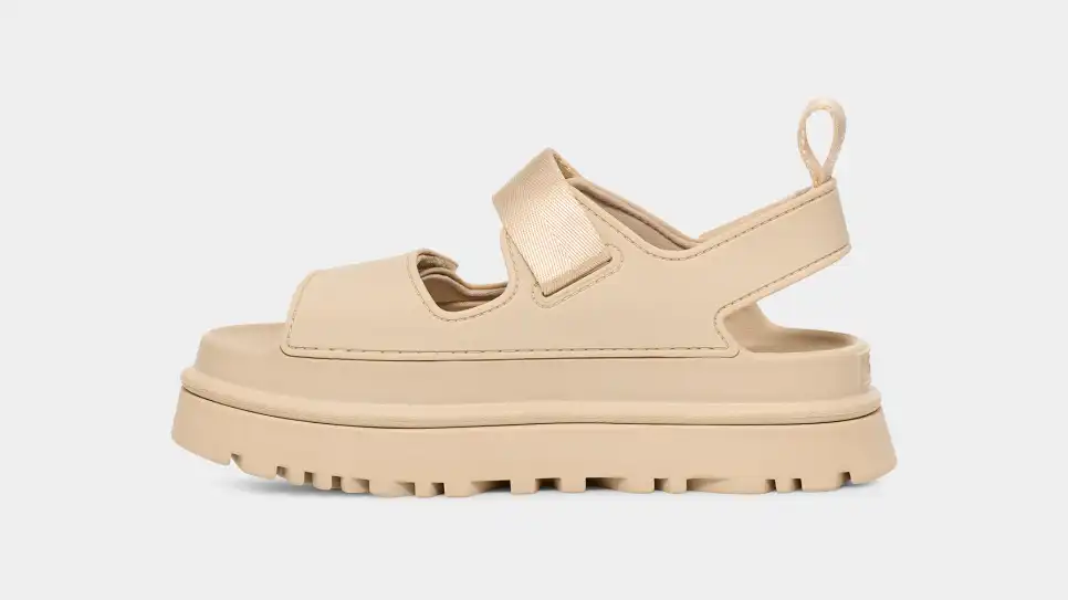 Bask in the GoldenGlow. Super lightweight and ultra-comfortable, the water-friendly GoldenGlow is a fully adjustable sandal. It's made from springy and supportive sugarcane EVA that's ready to wear through rain and shine. Stacked on a platform with a lug sole and complete with a grippy footbed, this pair looks as dynamic as it'll make you feel.