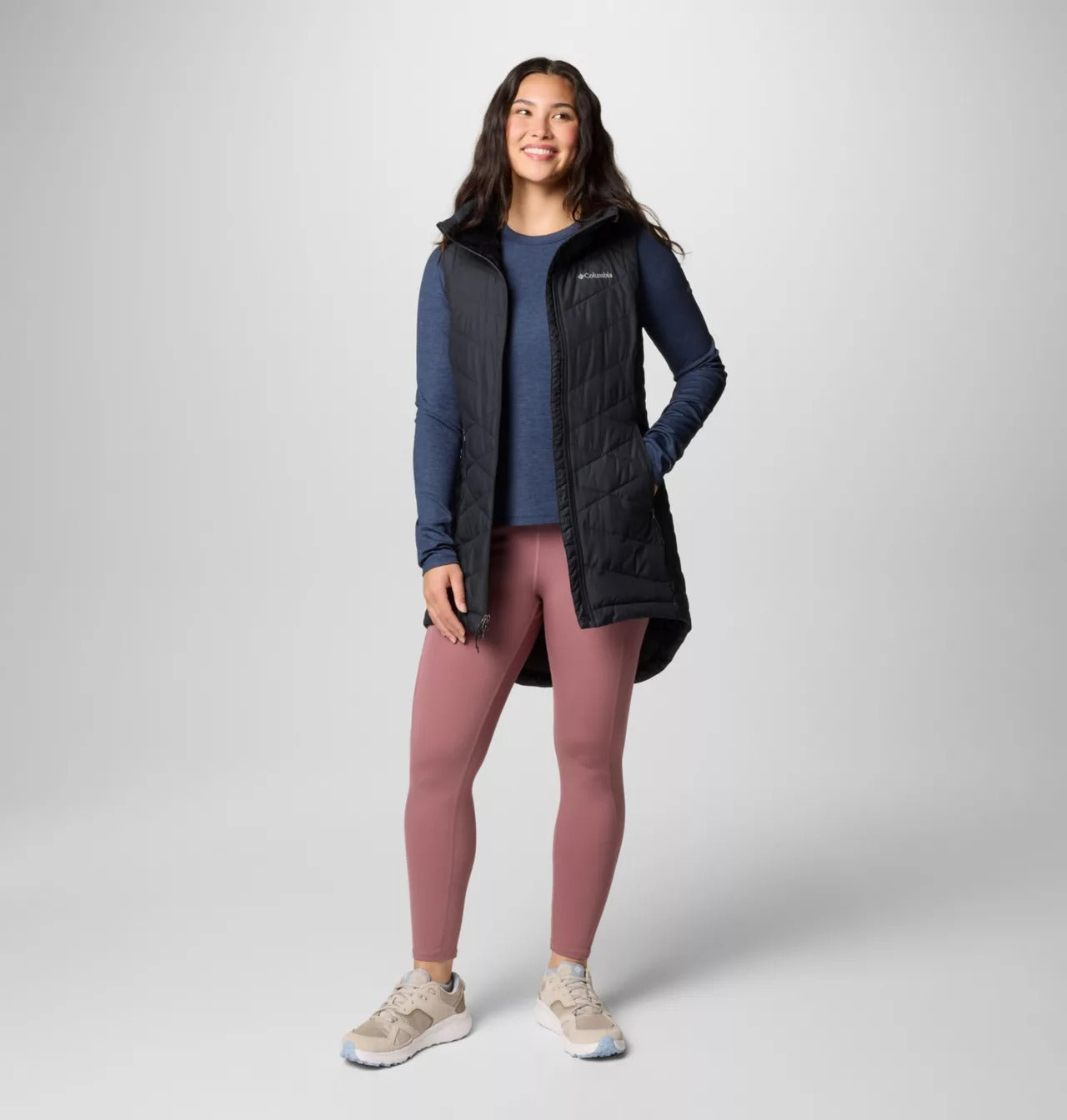 From a walk in the woods to a city adventure, this lightweight vest features thermal-reflective lining and light-rain-resistant fabric for winter weather, while a long silhouette adds extra coverage.