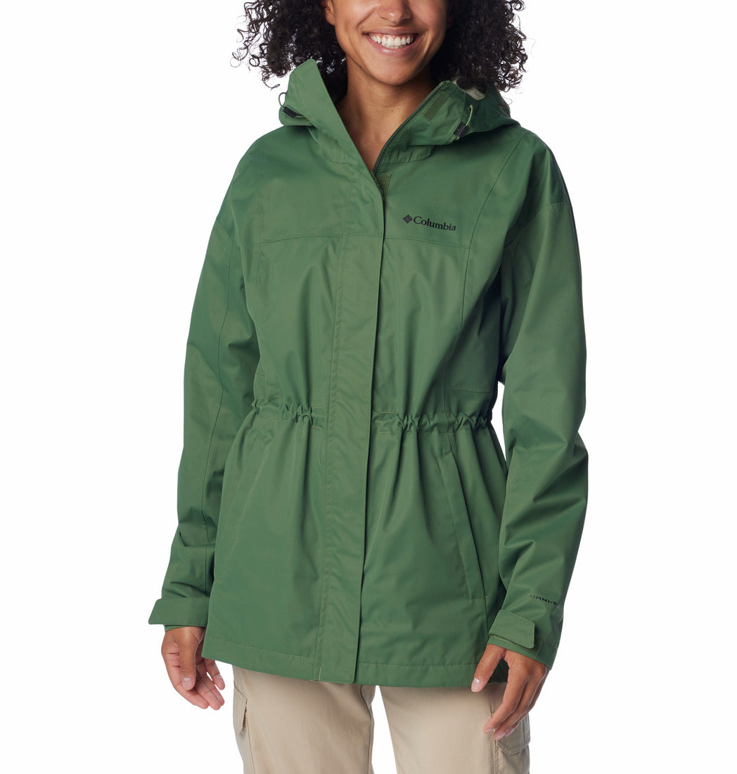 Drawcord-adjustable hood, waist, and cuffs create a fit made to seal out the rain.
