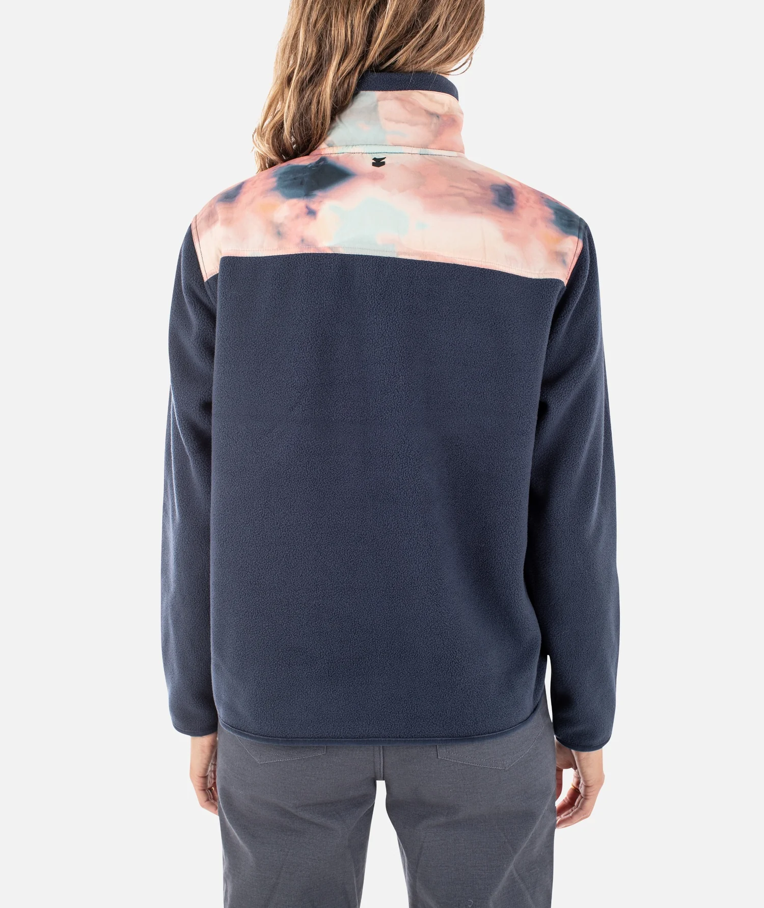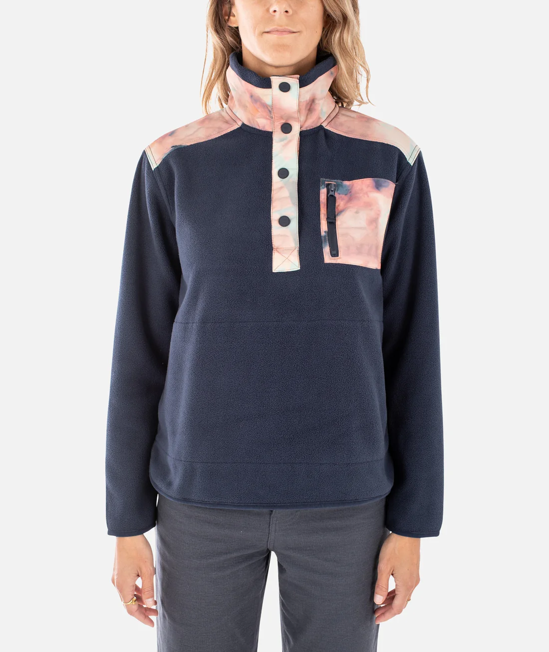 The everyday pullover you've been waiting for. Cozy fleece blocked with printed nylon for durability and fun, the Juniper Fleece can be worn out in the woods for a full day of exploring and take you back home to curl up with a book by the fire.