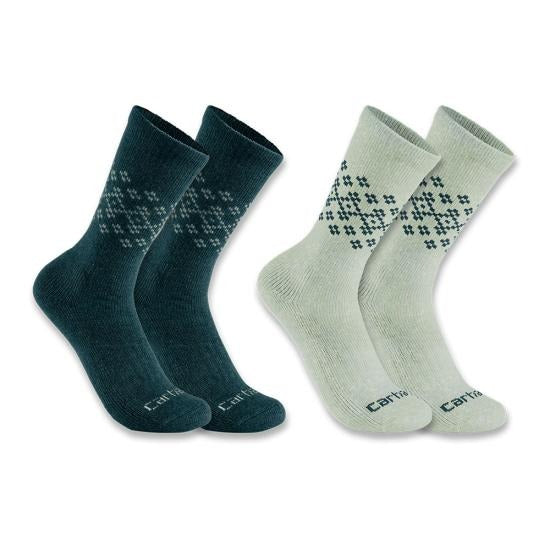 Women's Midweight Synthetic-Wool Blend Fairisle Crew Sock 2 Pack