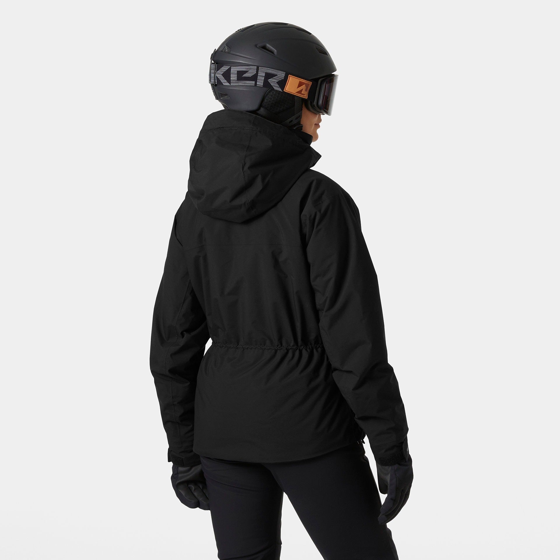 Our Women's Nora Insulated 2.0 Ski Jacket blends retro '90s aesthetics with our waterproof/breathable HELLY TECH® Performance technology for a playful, dry, and comfortable jacket. It features a removable hood with an eye-catching lining, a cinchable waist for a personalized fit, a high collar for adaptability in cold conditions, and a LIFE POCKET™ for preserving phone battery life in cold conditions. The cinchable waist ensures a personalized fit, making it a versatile choice for varying styles. The jacket has an on-trend, boxy fit and is designed with a low-profile powder skirt and a tail drop for extra coverage to keep you dry and protected during your skiing adventures.
