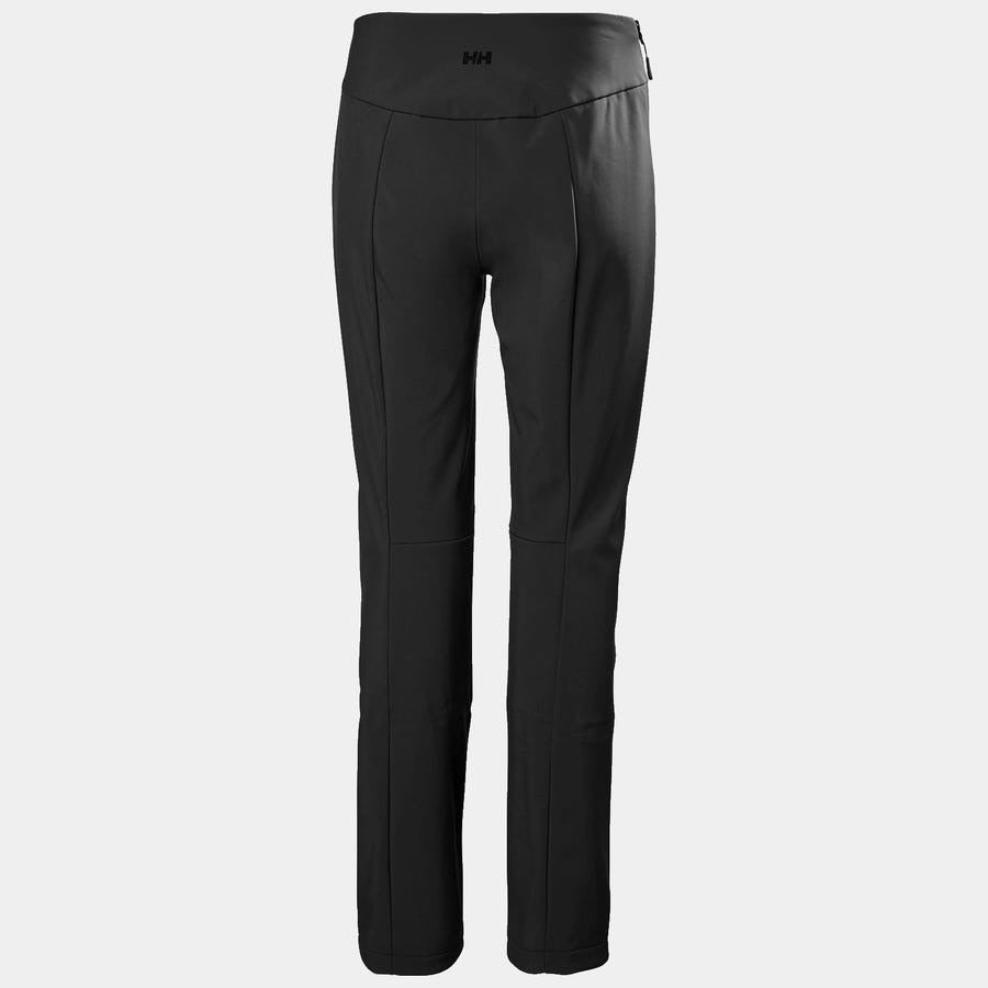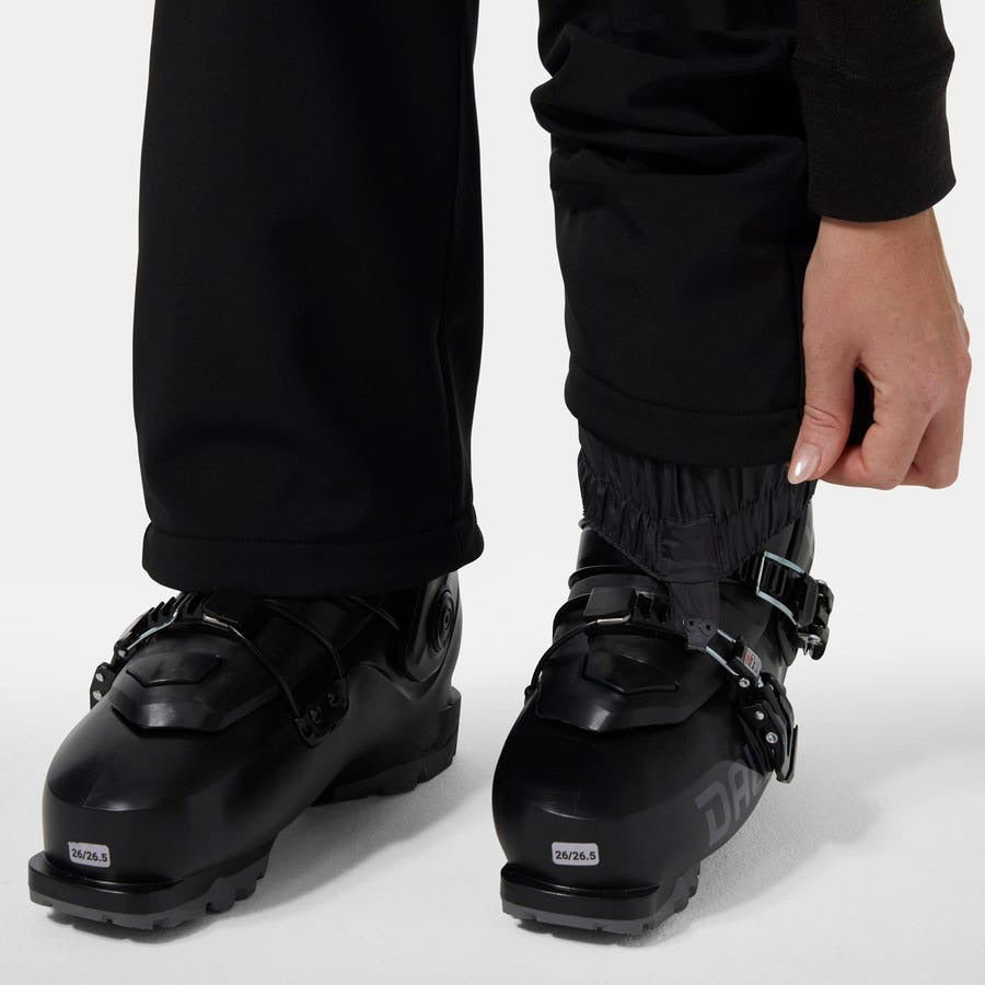 Our Women's Nora Softshell Pants are designed for comfort on the slopes and at the après ski. Made with stretch softshell fabric and a brushed fleece interior, these pants provide a flattering fit in an on-trend silhouette. Critically taped seams offer light water resistance, ideal for fair-weather skiing. The articulated knees and flared legs enhance mobility, making them perfect for both resort skiing and city wear. The side zipper allows for easy on and off, and the hidden boot hook makes these pants perfect for snowshoeing or sledding with the kids. We added thoughtful features include a ski pass pocket, snow gaiters, and boot hooks to keep everything in place.