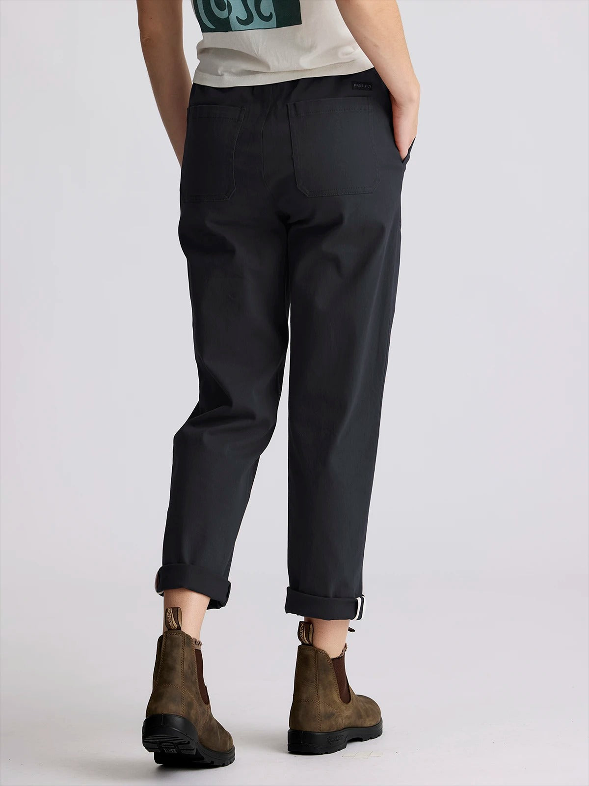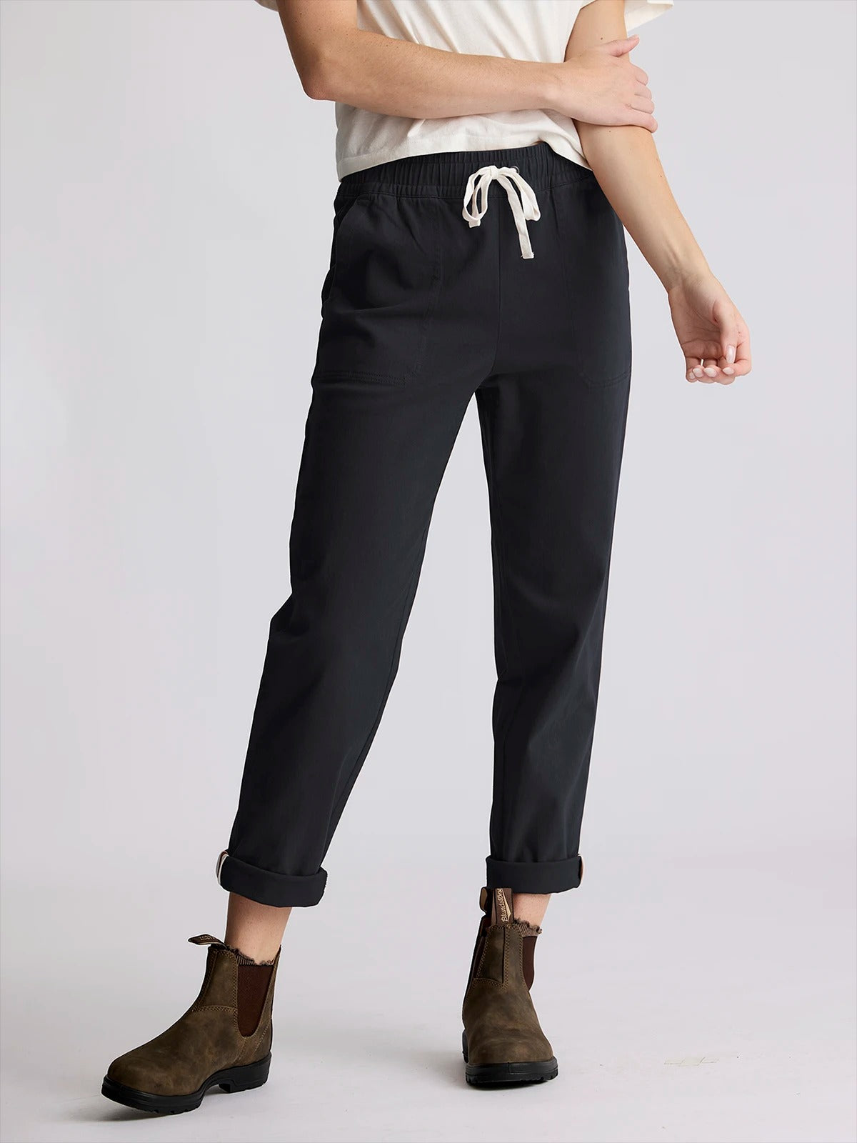 Jeans, who needs ‘em? Ditch the rigid feel of a fixed waist and slide into our Pacifica Twill Pant. Made to move from a stretch twill with an integrated elastic waist, this pant has quickly become a favored staple in our wardrobes. With details like classic patch front pockets and a tapered leg, the Pacifica Twill can dress up or down—tailor-made for those spontaneous days, when you wanna hit the trail after work but skip the awkward backseat wardrobe change.