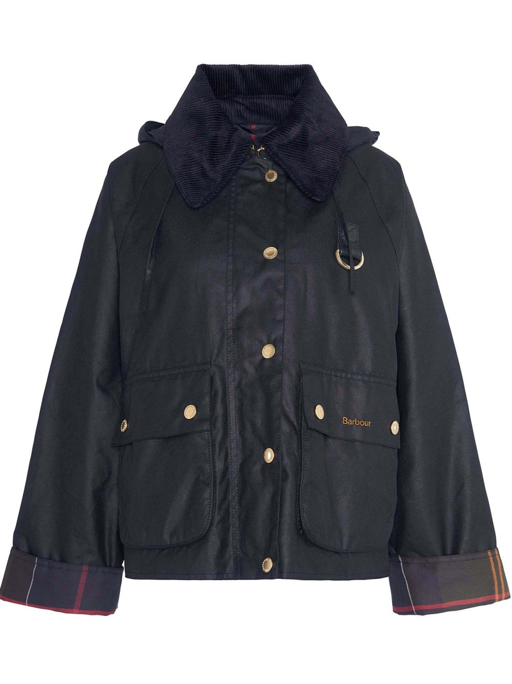 Inspired by our most-loved, archive Spey Waxed Jacket, the Barbour Reighton Spey Waxed Jacket showcases all of the classic details such as the D-ring tab to the chest and a detachable hood. Complete with an oversized cord collar for a contemporary finish and tartan trims to the cuffs for a playful finish.