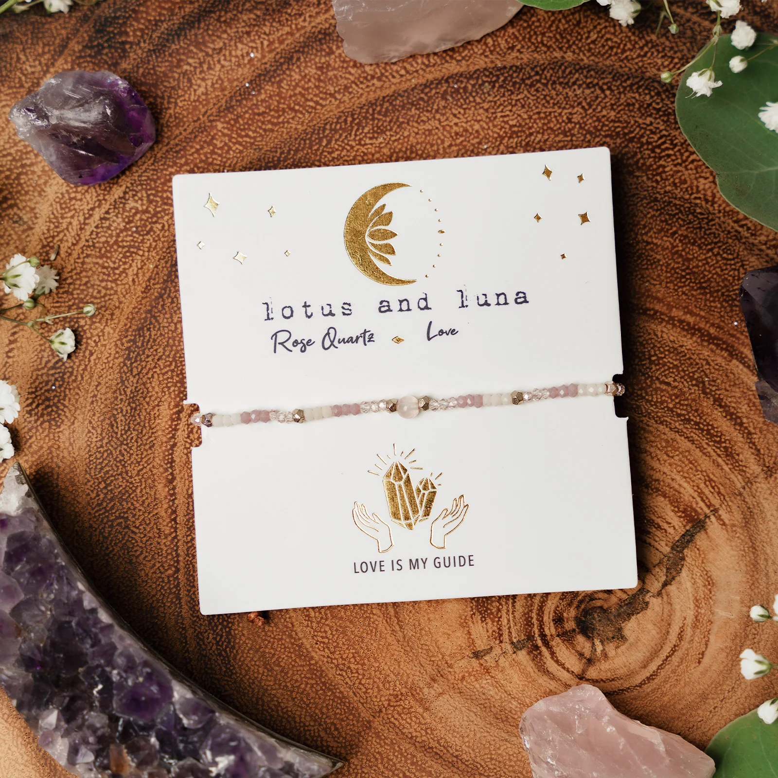 Our Goddess Collection was created to wear as a reminder of positive affirmations to guide you in confidence and change, repeat these words while wearing our Rose Quartz Goddess Bracelet: "Love is my guide."