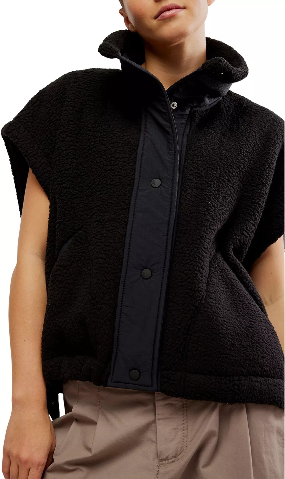 Keep it comfortable in this fleece vest, crafted in a relaxed silhouette for an ultra-cozy feel however you move. Topped with nylon paneling, button-front placket, and funnel neck.