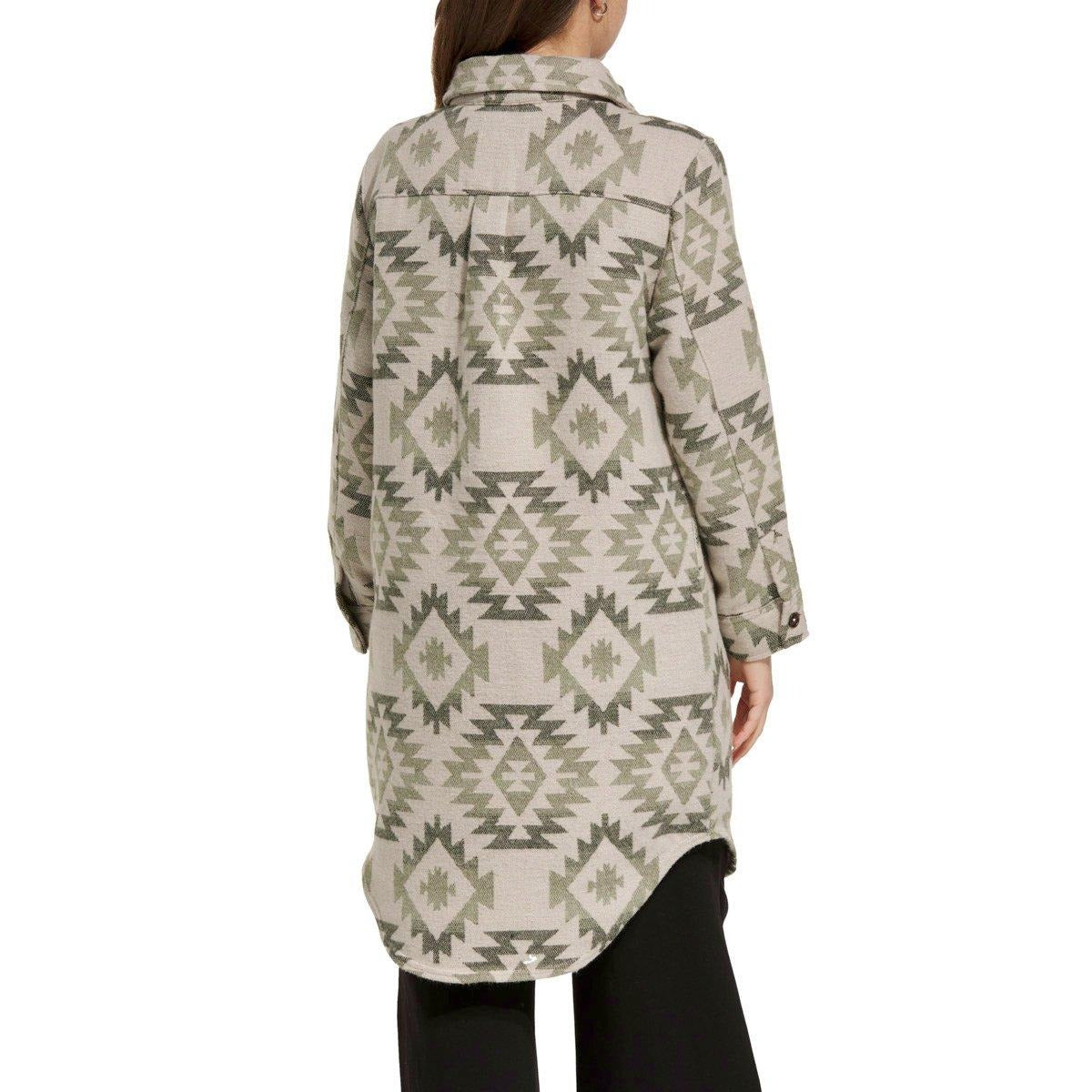 This heavy duty long coat provides the look and feel of wool with the durability of polyester. Aztec patterns provide an Americana appeal a generous cut allows for layering. Button it up, and the dense faux wool will help block the looming fall breeze.