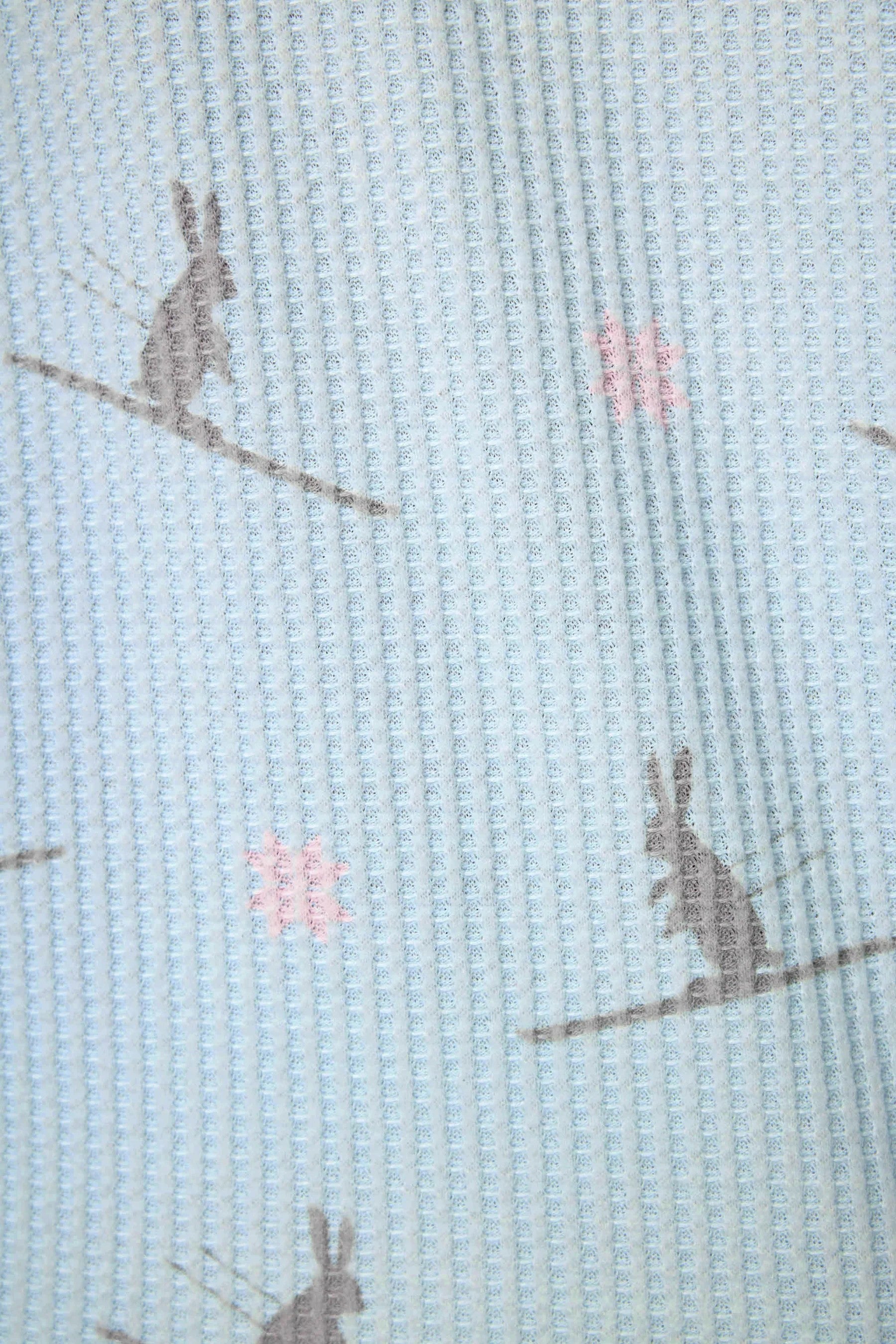 Be the ultimate snow bunny in this brushed thermal pajama set, patterned with playful bunnies swooshing down the slopes. The pale-blue Henley top is trimmed in icy blue and pairs with jogger pants tied with a crisp white ribbon—made for après-ski lounging, cocoa in hand.