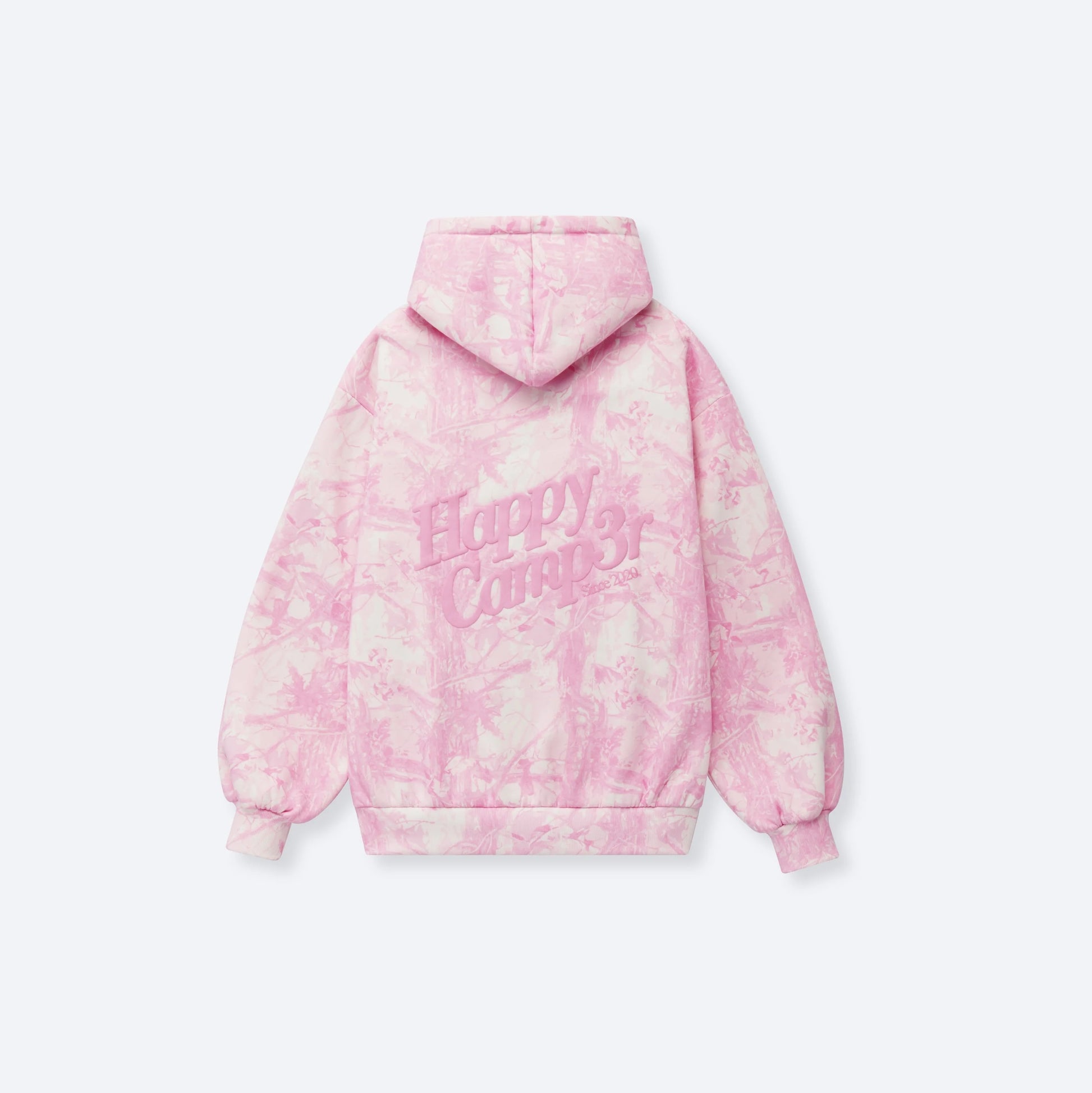 Blend in, stand out. The Soft Pink Camo Zip-Up Hoodie is made from a cozy cotton-blend fleece that keeps you warm without weighing you down. With a relaxed fit, full-zip front, and roomy kangaroo pockets, it's the perfect layer for lounging or heading out. The soft pink camo print adds a fun, feminine twist to a classic staple.
