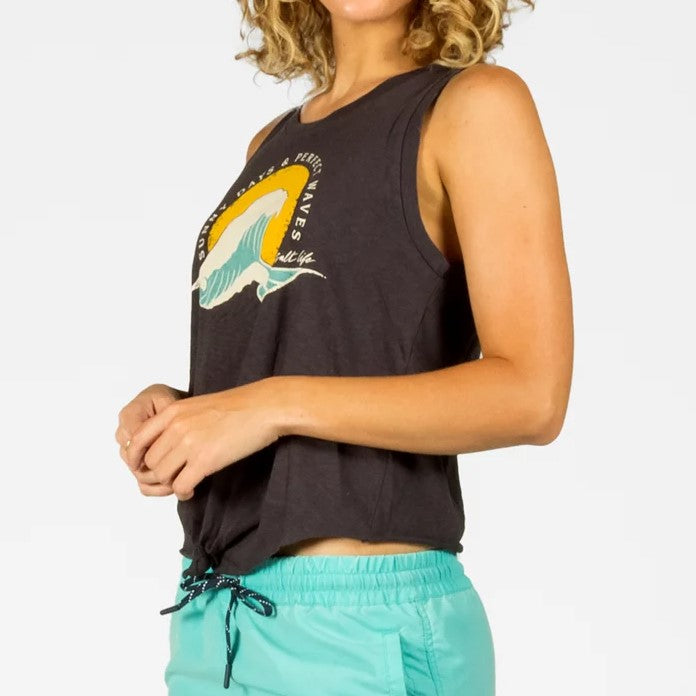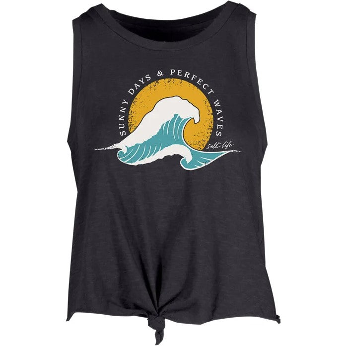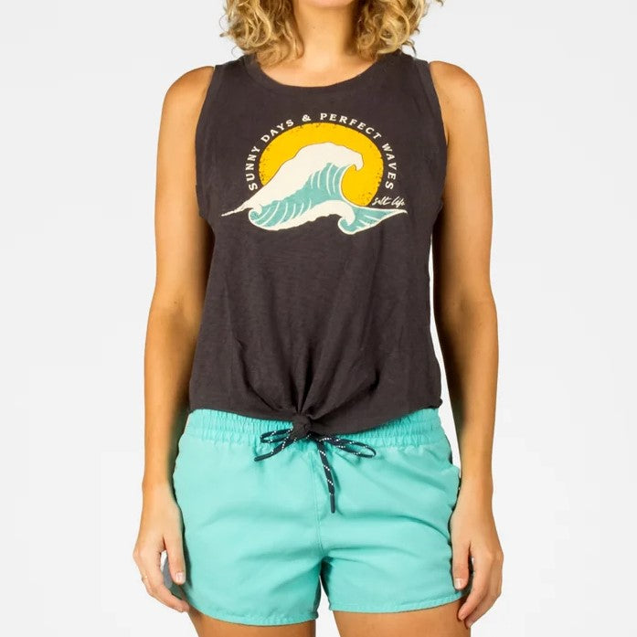 The Sunny Days muscle tank top is a great addition to your wardrobe! Featuring a front screenprint logo, scoop neck, knot front, and 100% cotton slub jersey fabric for a soft to the touch feel and comfortable fit. Available in multiple colors, this Salt Life tank is perfect for casual wear and layering during transitioning weather.