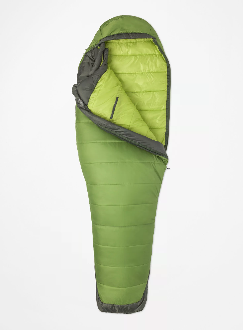 The Women's Trestles Elite Eco 30 Sleeping Bag is an environmentally friendly update which features Marmot Upcycle® PFC-free and recycled shell, lining, and fill. It also has a female-specific fit and extra insulation in key areas. The HL-ElixR™Eco Micro synthetic insulation uses a unique blend of three fibers for maximum warmth, soft hand feel, and high loft. Wave construction on top and a blanket construction on the bottom provide optimal warmth and comfort. An anatomically 3D footbox and a fold-down secondary zipper offer ventilation and easy access for this mummy sleeping bag. We designed the Trestles Elite Series for treks where every ounce counts, so we kept the lightweight and easy compressibility of the original. EN rated as comfortable for women to the comfort level of approximately 29.7°F.