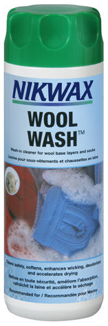 Deodorizing cleaner and conditioner for woolen technical underwear and wicking clothing worn next to the skin. Wool Wash™ effectively cleans, softens, freshens, inhibits the build up of body odors, accelerates drying and improves cooling efficiency of woolen base layers.