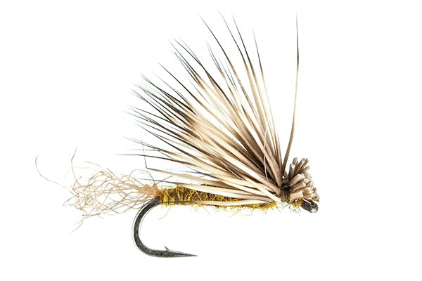 The Montana Fly Company X-Caddis features a size #16 hook and a poly fiber tail. This pattern can represent any stage of the adult caddis. This highly visible fly lies flat in the water and floats like a cork.