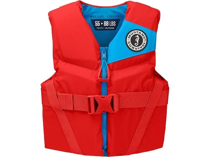 The Mustang Survival Youth Rev Life Jacket has segmented foam which enhances mobility, and the ultra-soft, stain-resistant outer fabric is durable. A ventilated mesh back and moisture-wicking liner are cooling and quick-drying. The zipper and buckle closure creates an adjustable and secure fit, and a grab loop on the back allows you quickly and easily pull your child from the water.